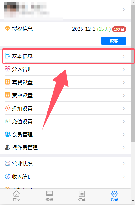 第一步 进入云蚂蚁后台 点右下角 设置—— 基本信息 即可设置剩余多少分钟提醒客人续费 和间隔多少分钟再次提醒 及提示短语
